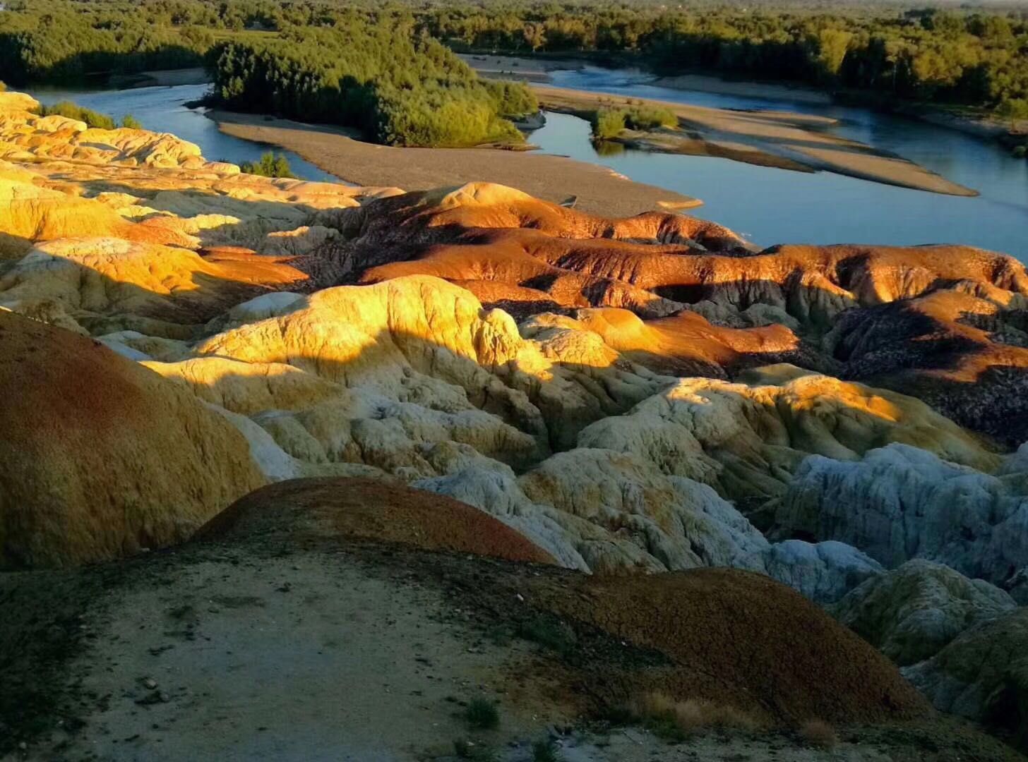 In Buerjin, where you will visit the colorful Multi-colored River Beach near the town. There are various colors clay beside the Ertix River, which is nice for the photos when it is sunset time.