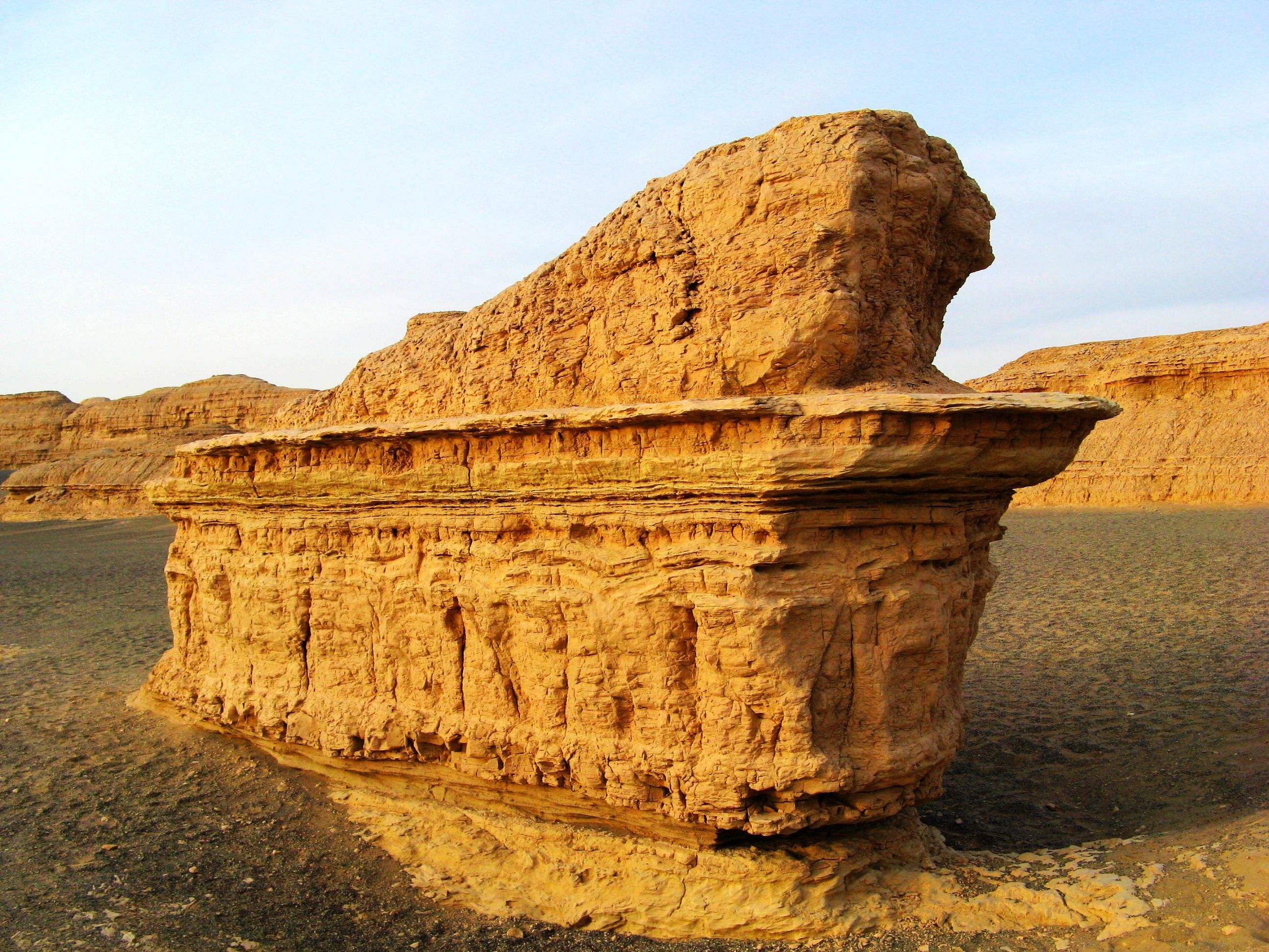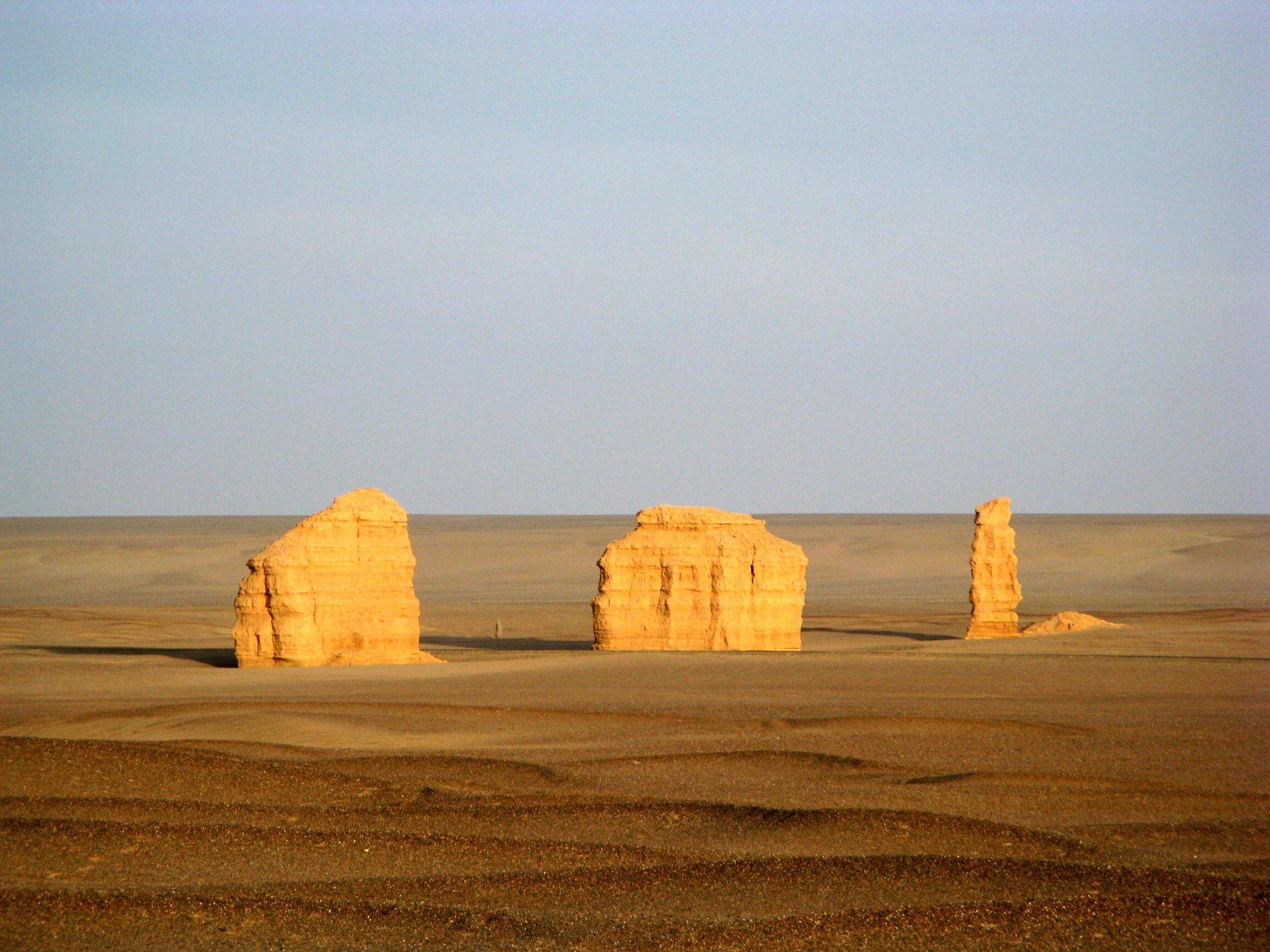 At 8am, you guide will meet you at your hotel lobby. Then, you will take a 1.5-hour ride to Jade Gate Pass, also known as Yumenguan in Chinese. Yang Pass and Jade Gate Pass were two important passes near Dunhuang in ancient time. You can still see the ruin of these big passes that are situated near an oasis in the middle of Gobi Desert. Afterwards, you will head to Han Dynasty Great Wall Ruin that was built in Han Dynasty about 2,000 years ago. It is very impressive to see the wonder extending from inland China all the way here, and then to Lop Nur. Later, you will continue driving for 1.5 hours to the Ghost City that is Yardan Geological National Park nearby Lop Nur, and it is the key route of the ancient Silk Road from Dunhuang to Lop Nur. There are many different clay formation created by the wind. You will hear the horrified sounds from the clay on a windy day as if whispers of ghosts, hence the name.